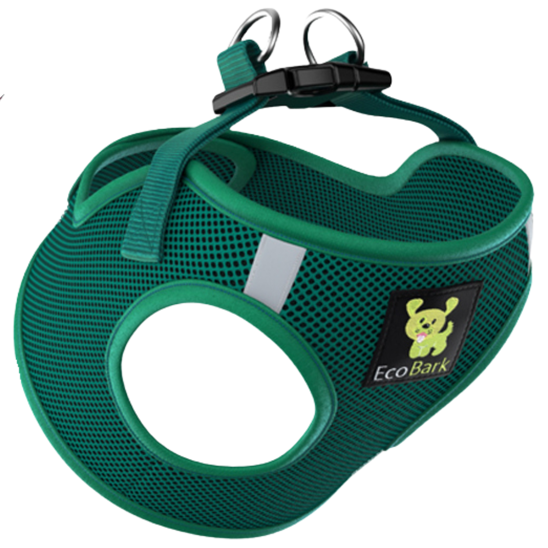 EcoBark's Eco-Friendly Forest Green Rapid Fastener Step In Dog Harness utilizes an innovative, no-choke design that will protect your dog's trachea and throat. The heavy-duty velcro belt is adjustable, providing a unique fit for your dog. The double-padded, breathable soft mesh and extra plush piping make the Rapid Fastener Dog Harness super comfortable to wear. Reflective harness strips at the shoulders of the harness make even the smallest puppy highly visible during evening walks. Perfect for Puppies, XXXS Teacup Breeds and XXS Miniature Breeds, XS Dogs, Small Dogs, and Medium Breeds.